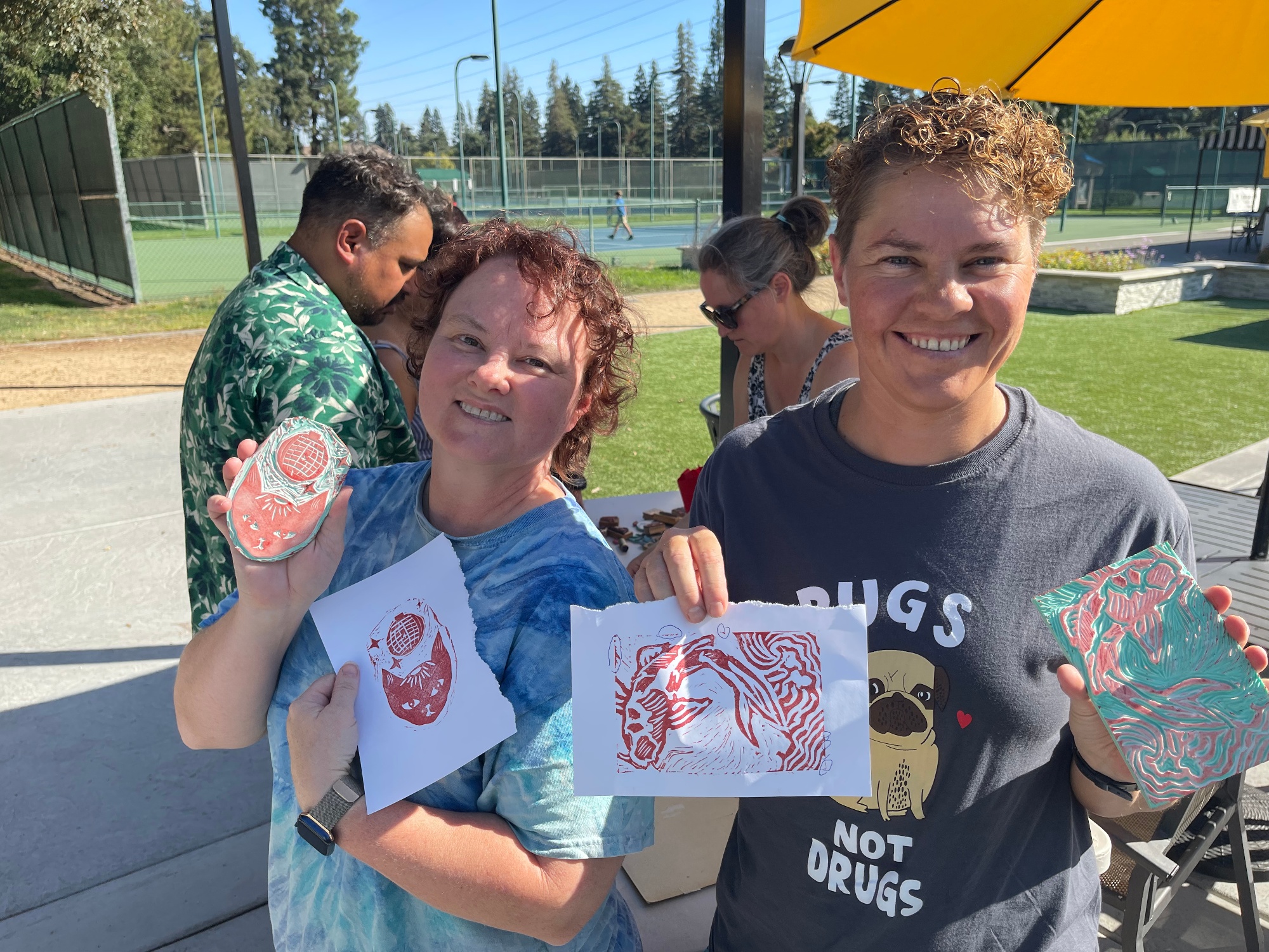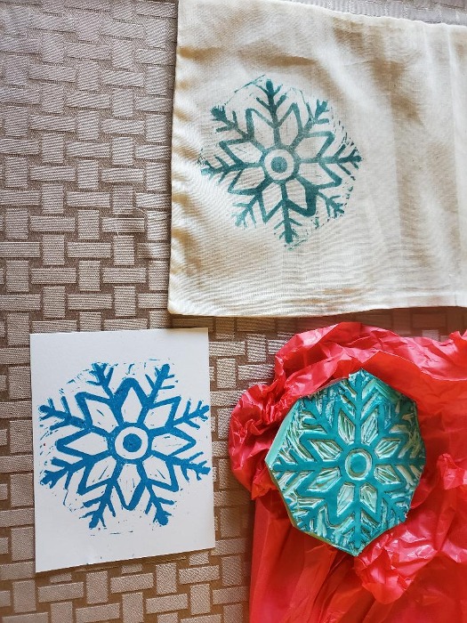 We made our own stamps in Heather Hogan's Block Printing Workshop. I loved all the prints. So fun! This picture is Stephanie's block.