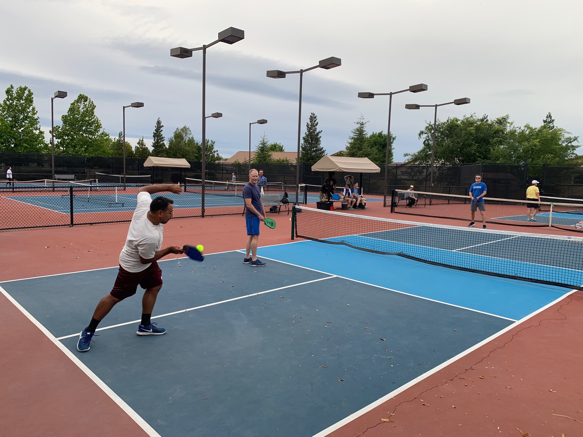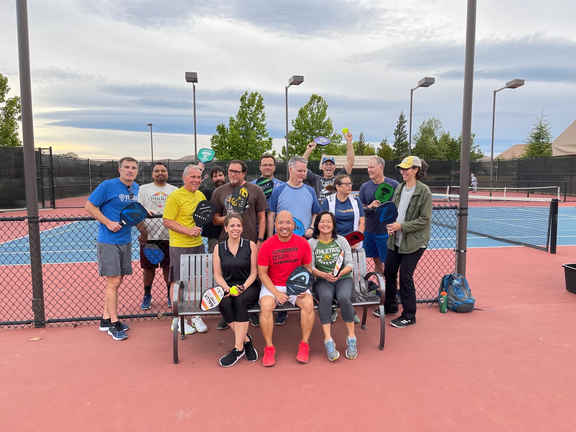Thank you Ramond and his fellow coaches for teaching Sac Masters swimmers how to play pickleball at this 5/27/22 social.